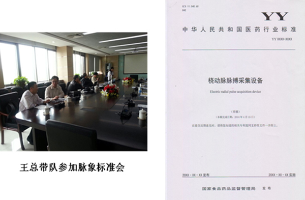 2014年4月,中華人民共和國醫(yī)藥行業(yè)中醫(yī)診斷行業(yè)標準會在天津醫(yī)療器械質(zhì)量監(jiān)督檢驗中心召開,公司作為中醫(yī)診斷行業(yè)標準制定方、驗證方,董事長王聯(lián)攜技術(shù)總監(jiān)、產(chǎn)品部經(jīng)理應邀參加行業(yè)標準會議。