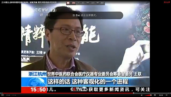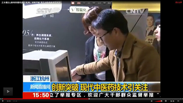 2015全國(guó)藥店年度峰會(huì)上我公司王總接受中央電視臺(tái)采訪,就目前中醫(yī)診療設(shè)備及中草藥現(xiàn)代化進(jìn)程發(fā)表自己的見(jiàn)解。