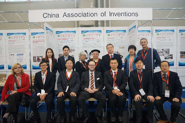 宣團(tuán)長率中國發(fā)明協(xié)會部分代表與發(fā)明展主席HENNING(前排中)、歐洲發(fā)明協(xié)會副主席BRENKA(前排左1)、葡萄牙發(fā)明協(xié)會主席費爾南多(后排右1)合影